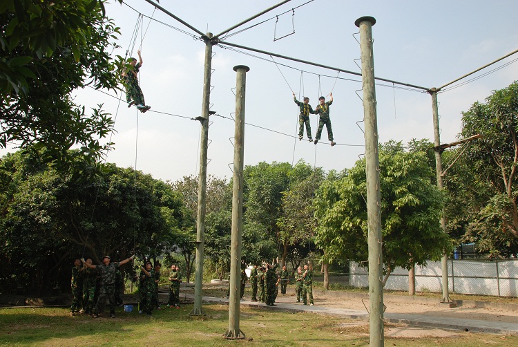 二、戶外團隊拓展活動。“凝聚 2014”卓越團隊訓(xùn)練營活動在軍歌嘹亮的訓(xùn)練基地舉行,內(nèi)容包括連隊建設(shè)組織PK、團結(jié)信任拓展項目信任背摔、雙人合作高空拓展項目天使之手、團隊溝通拓展項目驛站傳書、團隊協(xié)作拓展項目環(huán)環(huán)相扣、團隊凝聚力熔煉拓展項目畢業(yè)墻。