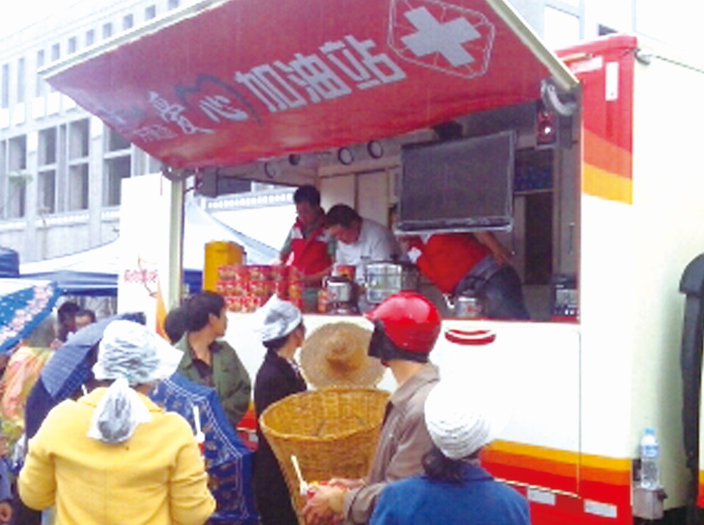 從22日下午3點(diǎn)一直到23日凌晨3點(diǎn),救援小隊(duì)的工作才暫告一段落。由于物資緊缺,救援小隊(duì)只能將就啃些餅干充饑。為災(zāi)民搭設(shè)了帳篷,他們卻沒有帳篷可住,就在街邊的盲道上和衣而臥。在19個(gè)小時(shí)高強(qiáng)度、透支性的行軍和勞動(dòng)之后,在尚有寒意的夜風(fēng)和零星的夜雨里,他們頭剛靠地就立刻睡著了。而只要有物資運(yùn)來,他們就立刻從夢(mèng)中醒來,繼續(xù)投入到裝卸物資的工作中。