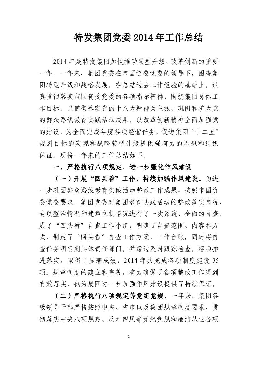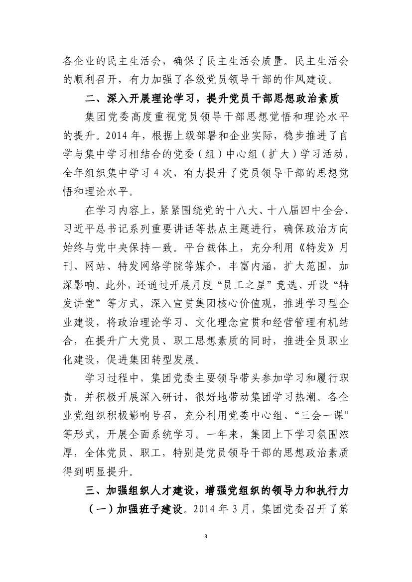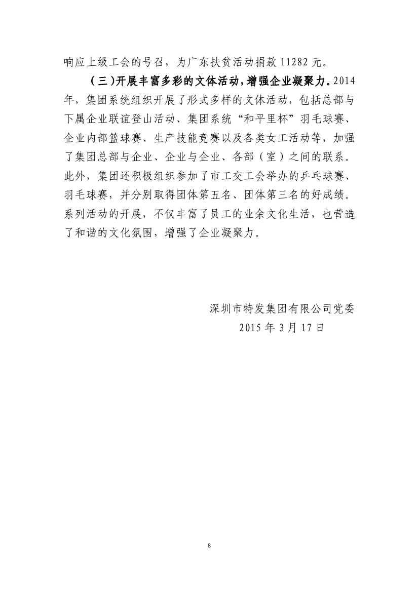 特發(fā)集團黨委2014年工作總結(jié)