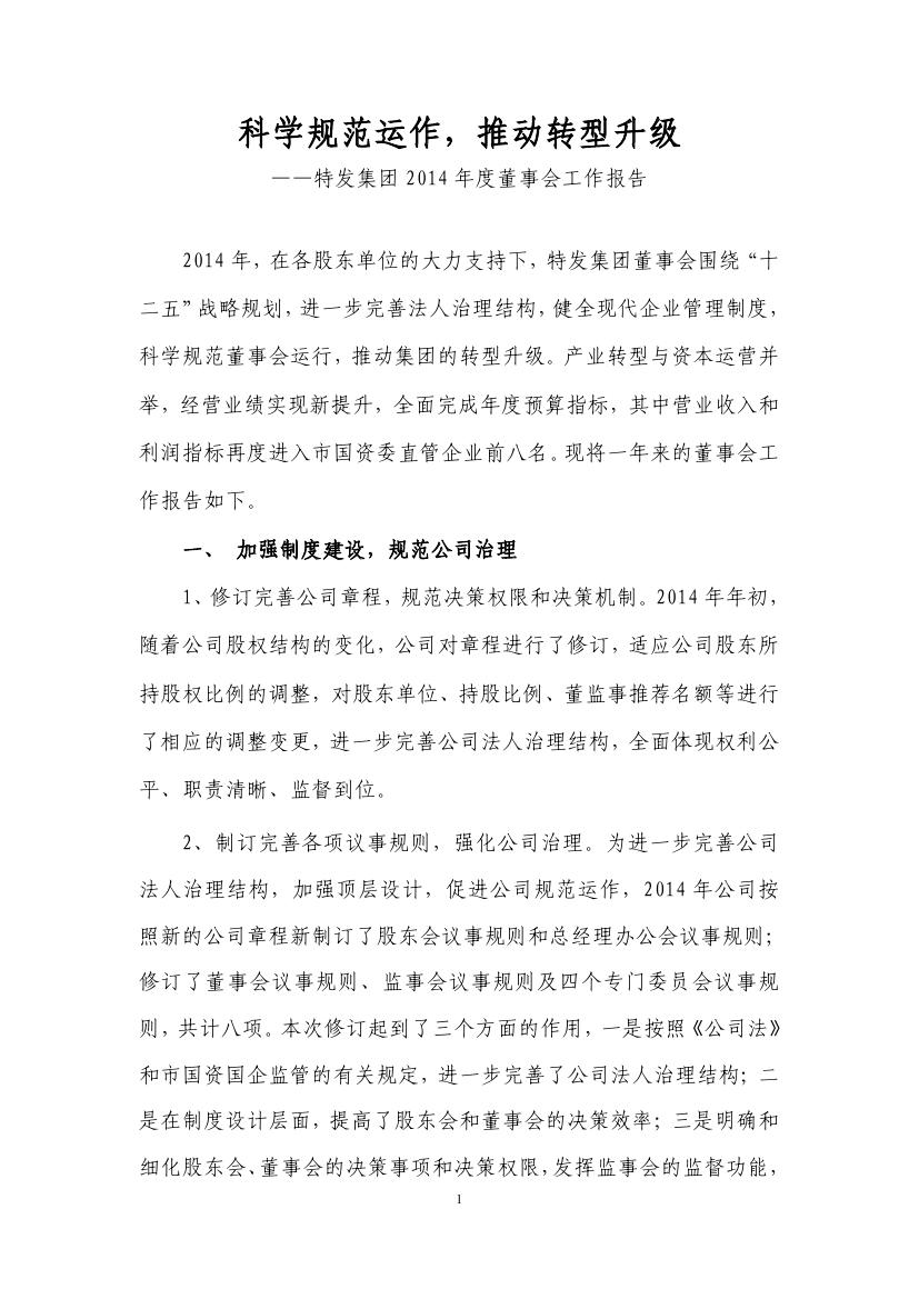 特發(fā)集團(tuán)2014年度董事會(huì)工作報(bào)告
