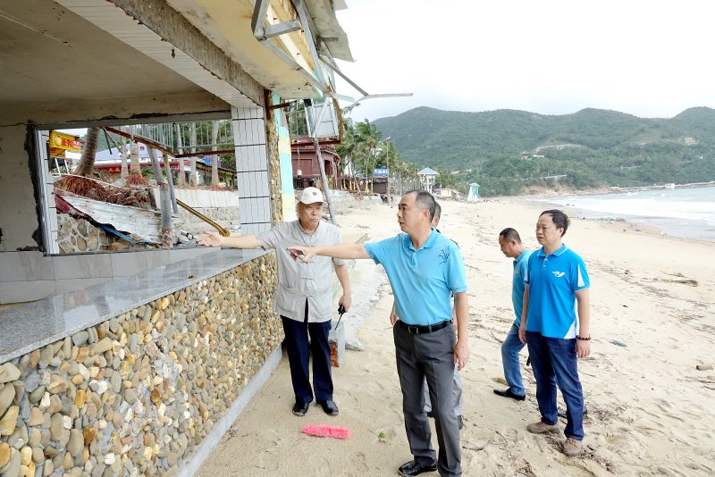 特發(fā)集團(tuán)張俊林董事長(zhǎng)、高天亮總經(jīng)理、張暾監(jiān)事會(huì)主席、陳陽(yáng)升財(cái)務(wù)總監(jiān)、桂自強(qiáng)副總經(jīng)理等先后察看了小梅沙酒店、小梅沙度假村的受災(zāi)情況,當(dāng)看到小梅沙沙灘堤岸被沖垮,酒店大量樹木倒塌,房屋建筑嚴(yán)重受損,張俊林董事長(zhǎng)表示非常痛心,沒想到災(zāi)害如此嚴(yán)重。同時(shí)對(duì)災(zāi)后重建及恢復(fù)生產(chǎn)工作提出三點(diǎn)要求:一是要根據(jù)受災(zāi)情況,盡快摸清實(shí)際損失,并制定災(zāi)后重建、恢復(fù)生產(chǎn)工作方案;二是要嚴(yán)防災(zāi)后次生災(zāi)害的發(fā)生,做好安全防護(hù)措施,特別是目前小梅沙度假村經(jīng)臺(tái)風(fēng)破壞后已處于開敞狀態(tài),要注意游客的生命健康安全;三是小梅沙旅游災(zāi)后重建工作要充分結(jié)合小梅沙二次開發(fā)整體安排,統(tǒng)籌協(xié)調(diào),做好沙灘修復(fù)工作。