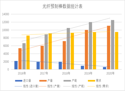 “十三五”期間光纖預(yù)制棒綜合情況統(tǒng)計表