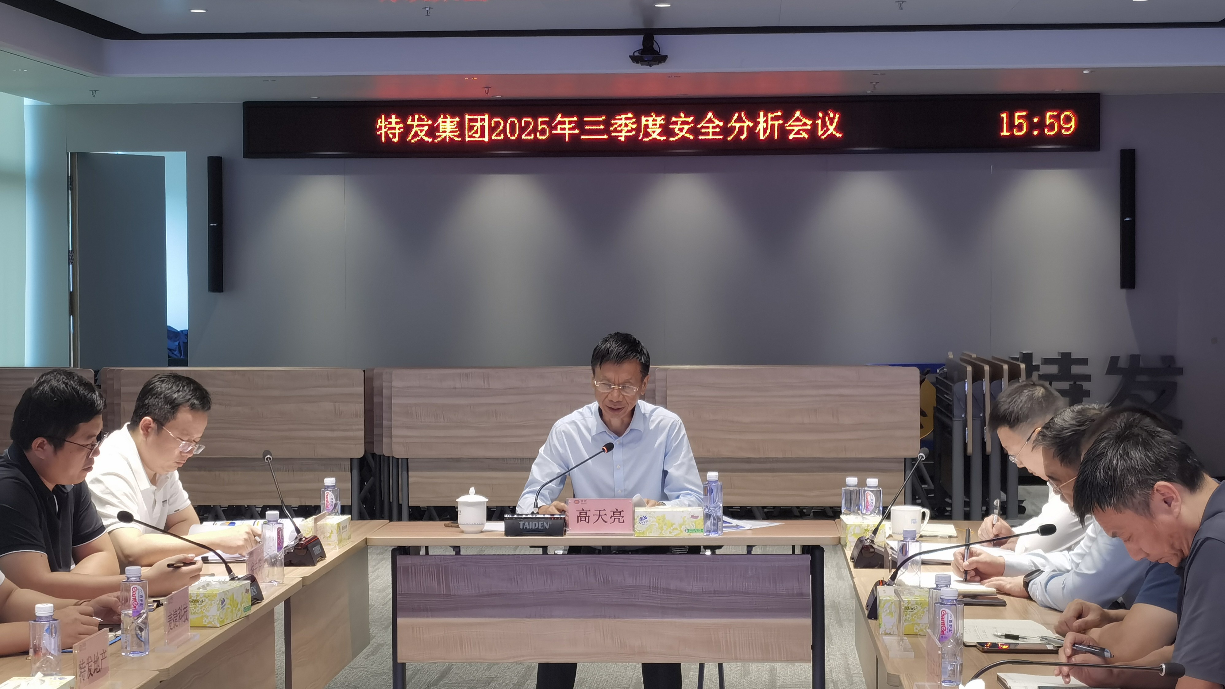 2025年9月25日下午,特發(fā)集團(tuán)召開2025年第三季度安全分析會。集團(tuán)總裁、安委會主任高天亮出席會議并講話,集團(tuán)副總裁、安全總監(jiān)李承主持會議。集團(tuán)安委辦、各企業(yè)主要負(fù)責(zé)人、分管安全工作領(lǐng)導(dǎo)及安全管理部門負(fù)責(zé)人參會。會議復(fù)盤了前期安全工作的成效與不足,充分研判當(dāng)前風(fēng)險(xiǎn)形勢,部署四季度重點(diǎn)防控任務(wù),進(jìn)一步壓緊壓實(shí)各級安全管理責(zé)任。