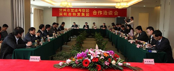 4月2日,廣西賀州市黨政考察團、特發(fā)集團合作洽談會在深圳高爾夫俱樂部有限公司舉行。賀州市委書記、市人大常委會主任彭曉春,特發(fā)集團黨委書記、董事長劉愛群分別率團出席了合作洽談會。賀州市委常委、常務(wù)副市長潘志金,市委常委、秘書長陸海平,副市長閉海東,賀州市委市政府7個局辦的負責人及3家企業(yè)負責人參加了洽談;特發(fā)集團參加合作洽談會的有:總經(jīng)理施長躍,副總經(jīng)理張建民,以及集團有關(guān)企業(yè)和部門的負責人。