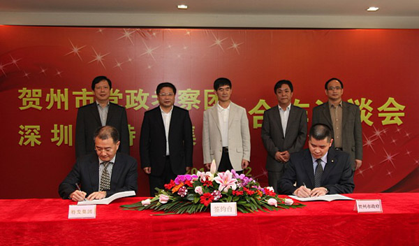 會議還舉行了簡短的框架性合作協(xié)議簽訂儀式。賀州市委常委、常務(wù)副市長潘志金代表賀州市政府與特發(fā)集團代表施長躍總經(jīng)理在合作協(xié)議上簽字。會議在熱烈的掌聲和相互祝賀中圓滿結(jié)束。