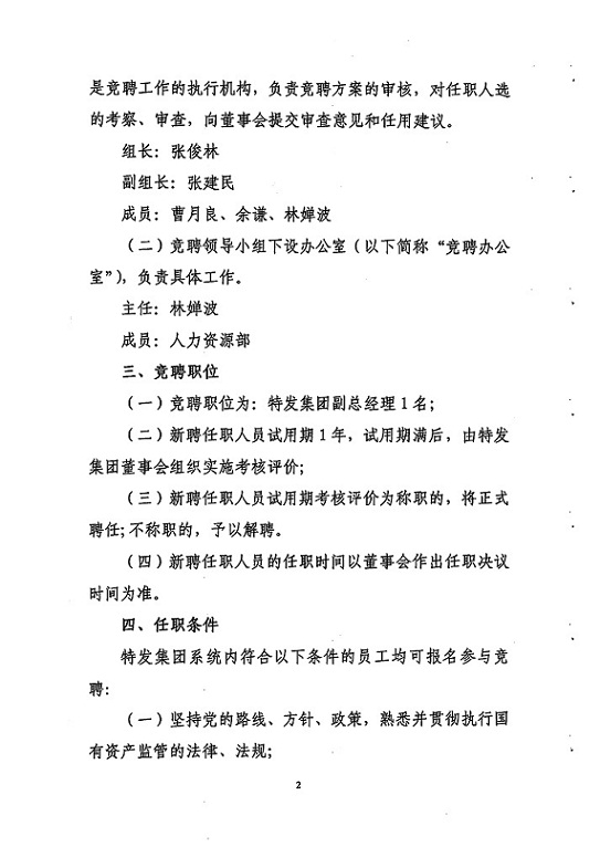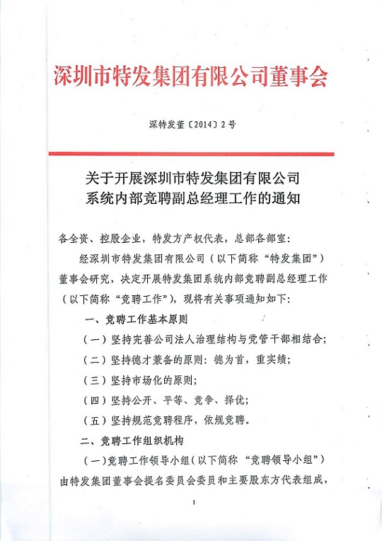 關(guān)于開展深圳市特發(fā)集團(tuán)有限公司系統(tǒng)內(nèi)部競聘副總經(jīng)理工作的通知