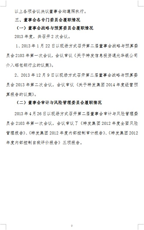 科學規(guī)范決策,推動戰(zhàn)略實施——特發(fā)集團2013年度董事會工作報告